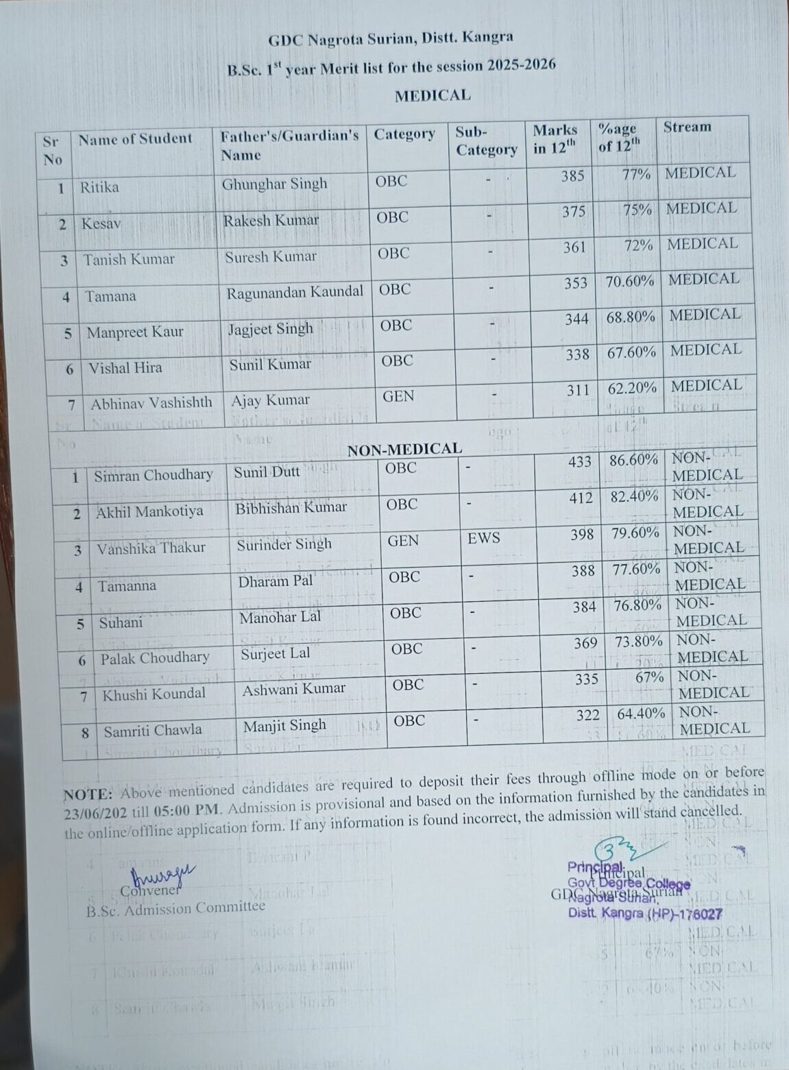 ▶ B.Sc. Merit List 2025-26