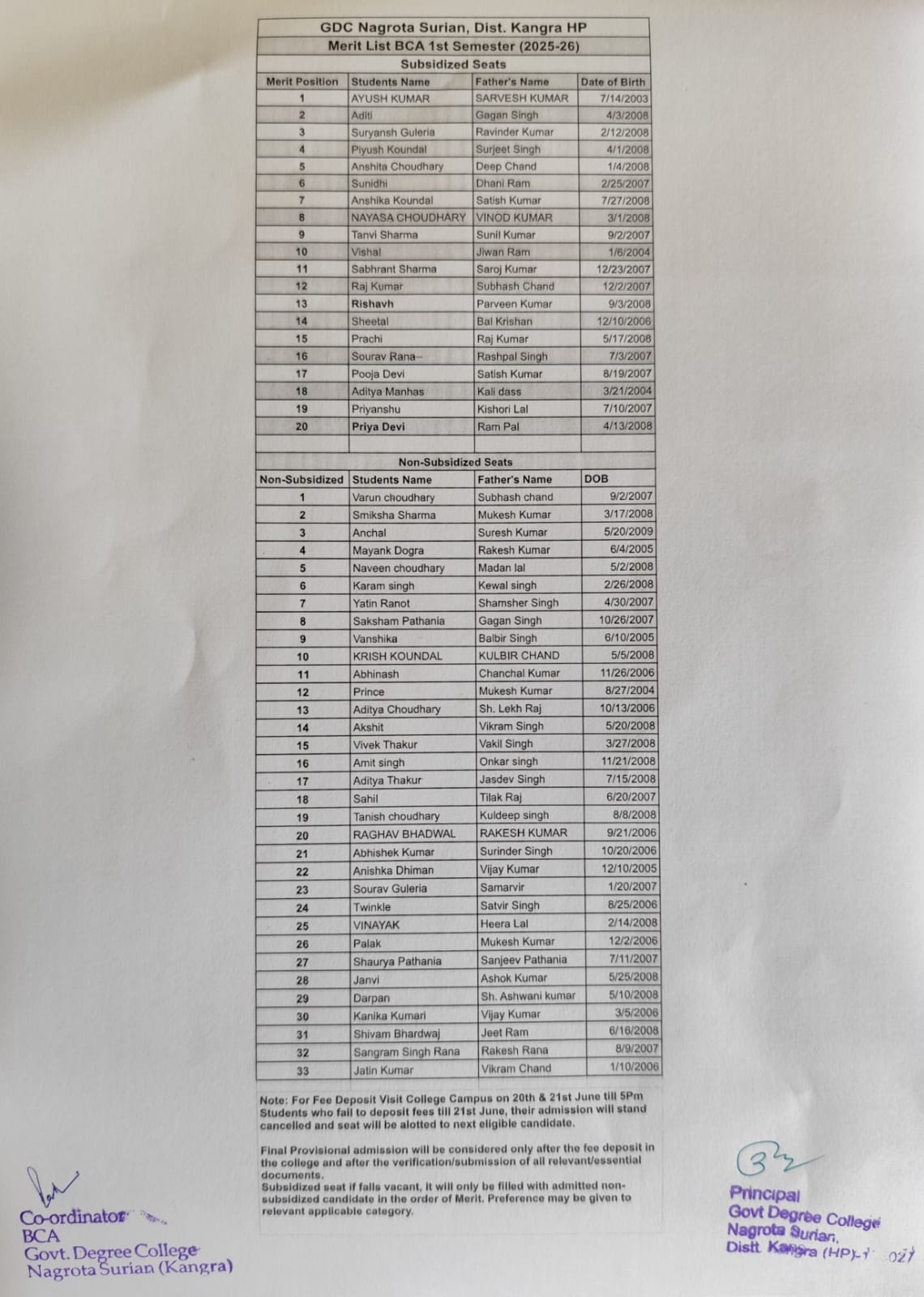 ▶BCA Merit List 2025-26