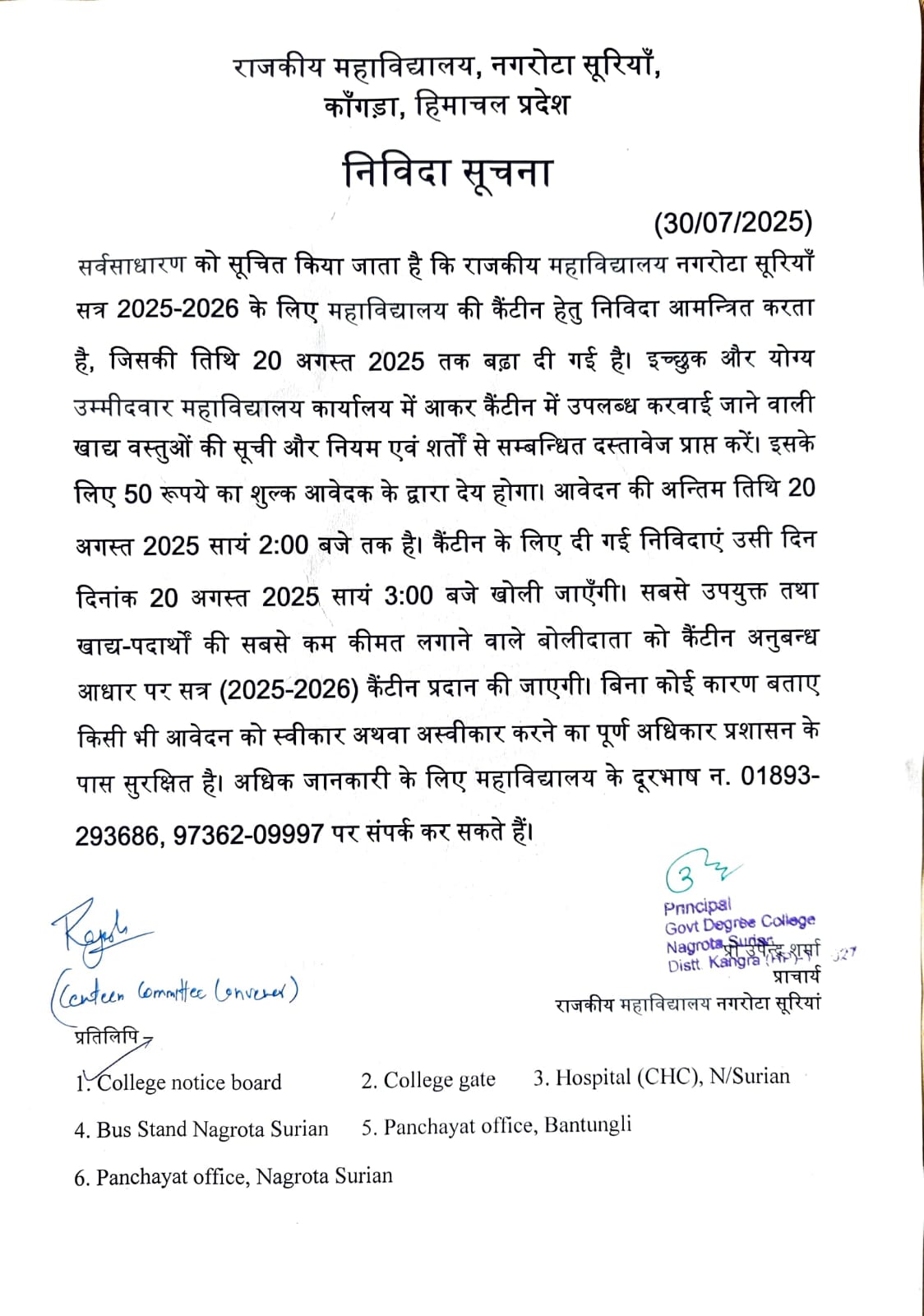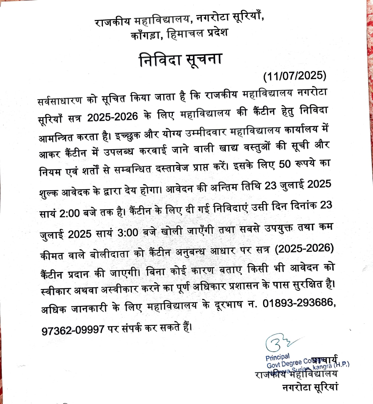 ▶ Canteen Tender Notification