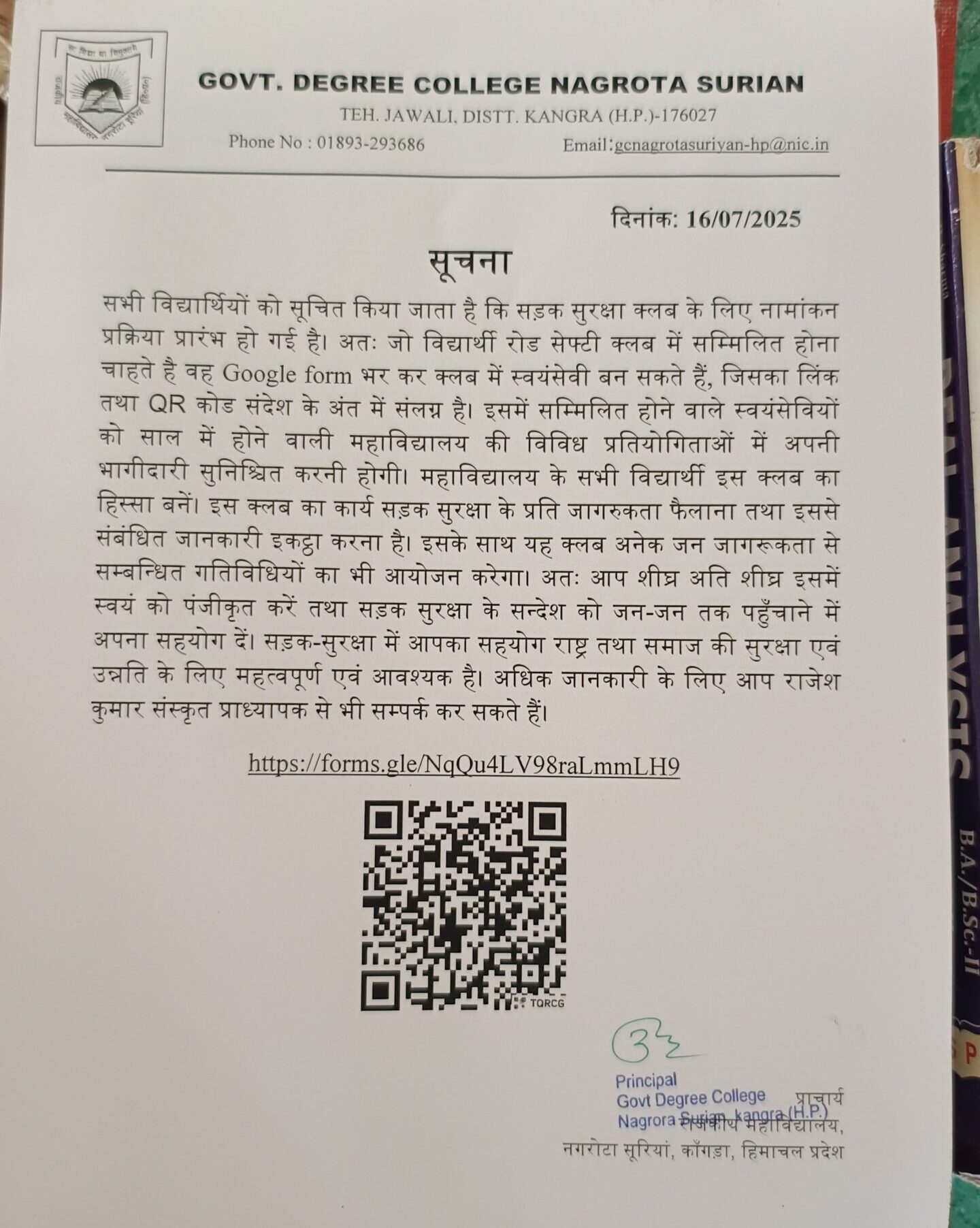 ▶ Road Safety Club Notice